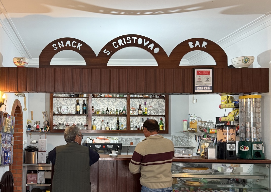 Típico café de aldeia, com passagem quase secreta para a sala de refeições, pelo corredor da casa de banho e pela porta entreaberta da cozinha.